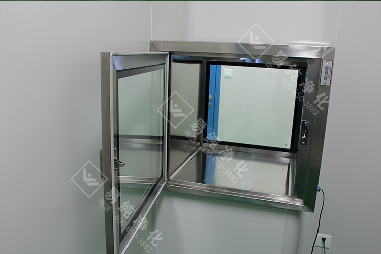 钢制成品门,双层中空窗内附不锈钢圆弧处理,右为压差表